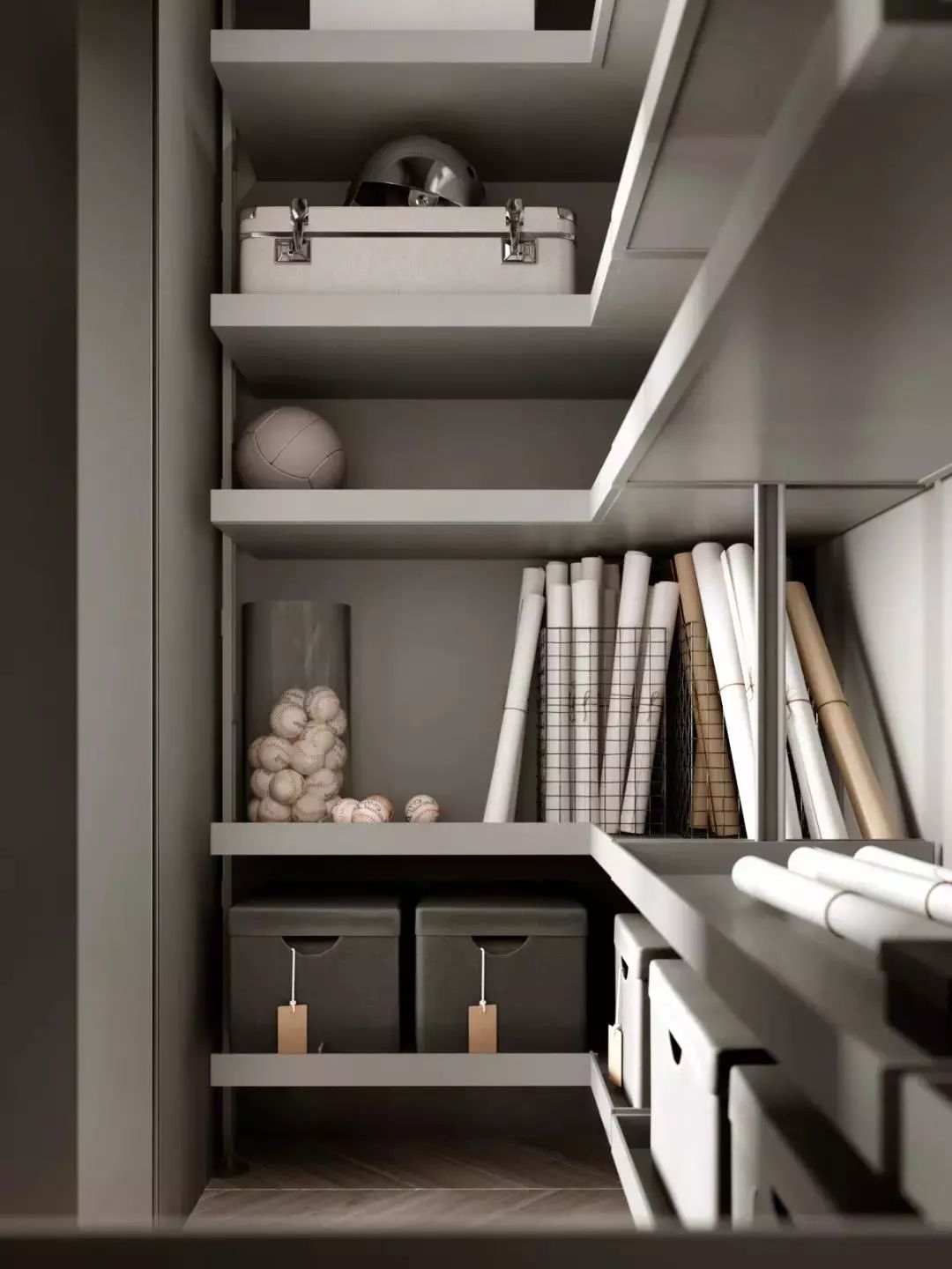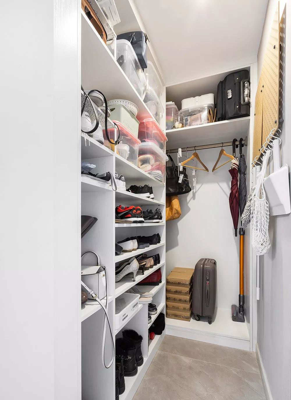 有些家庭在进门附近会设计一个小的储藏室,回家时随手将买的卷纸、牙膏等日用品顺路放好。