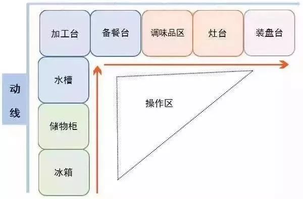 取材?清洗?处理食材?烹饪?装盘,这里的动线设计要考虑到如何操作方便、节约时间。