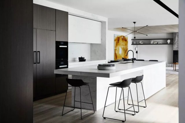 厨房还可以做成开放式的格局,除了橱柜外,搭配上一个中岛台,中岛台还可以作为吧台餐厅来使用,对于小户型来说更实用,也能给大户型增添一些情调感。