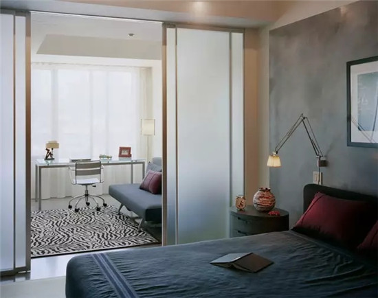 常规的小户型在做卧室与客厅的隔断时,如果按照封闭式的开关门设计,空间更容易显狭小,一些采光不好的户型,还容易遮挡采光。