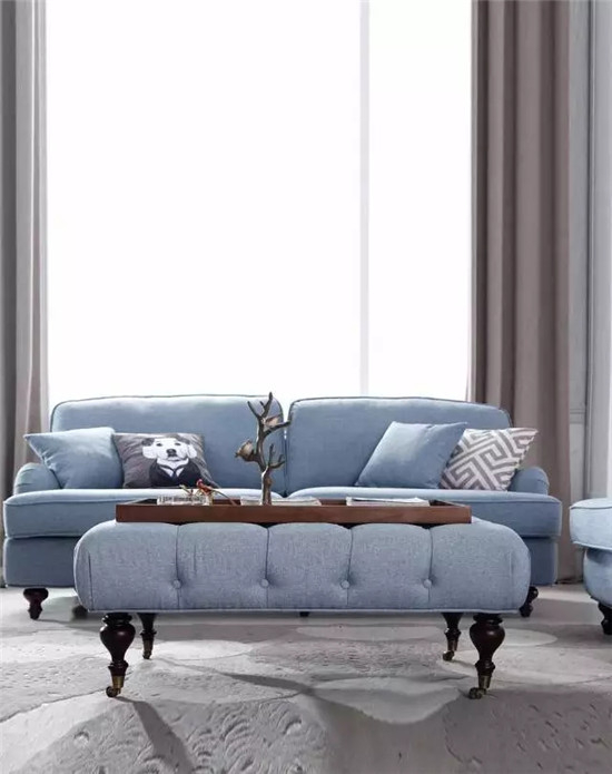 沙发区中的茶几不再是我们常见的原木、亚克力等一系列冷硬的材质,经过布艺软包后的茶几看起来更加具有蓬松感,敦厚的体感增加了给人以温馨的感觉。